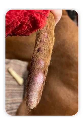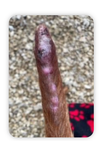 For two years we have battled with Jaspers tail, he is a very happy dog and repeatedly bangs it against anything in the way. When offered this product to try just a few weeks before Crufts we jumped at the chance… we were at our wits end! We were instructed to wrap Jaspers tail with Collaclot™ prior to bandaging. On removal of the dressing 3-4 days later the wound had noticeably started healing! Just a few weeks on, the skin around the wound is noticeably smoother and the hair has grown back. He hasn’t had hair on the end of his tail for the past two years! Collaclot™ is an absolute miracle product!