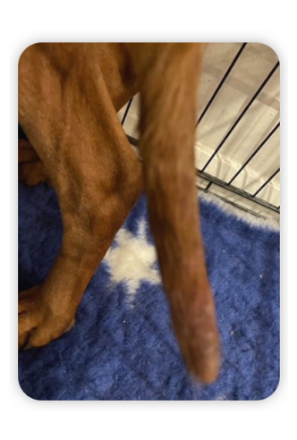 The distinguished and elegant Sh Ch Layways Van Winkle JW (Hungarian Vizsla) Jasper – has a family link to the manufacturer's CEO who owns one of his pups Rafiki. On hearing that Jaspers' owner was extremely worried as Jasper’s Happy Tail injury was not healing, was becoming infected and they had tried numerous methods unsuccessfully, naturally, they wanted to offer help.