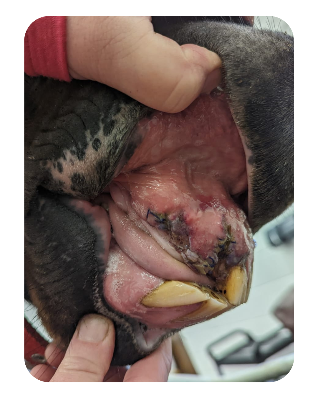 I used some Collaclot again yesterday. A 20-year-old thoroughbred gelding, oral extraction of multiple incisor teeth under sedation and local anaesthesia. Arterial bleeding from alveolus during extraction, vessel had retracted into the premaxilla, so could not be clamped and lighted. Collaclot placed in alveolus with pressure applied using gauze swabs and left in situ. Picture is from the day post-surgery, not easy to see the Collaclot as within alveolus, but the ability of the Collaclot to stop the arterial bleeding was impressive!